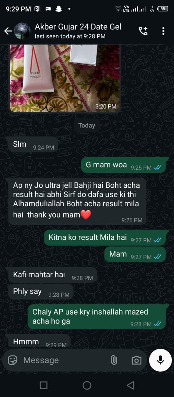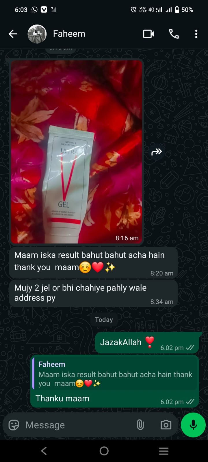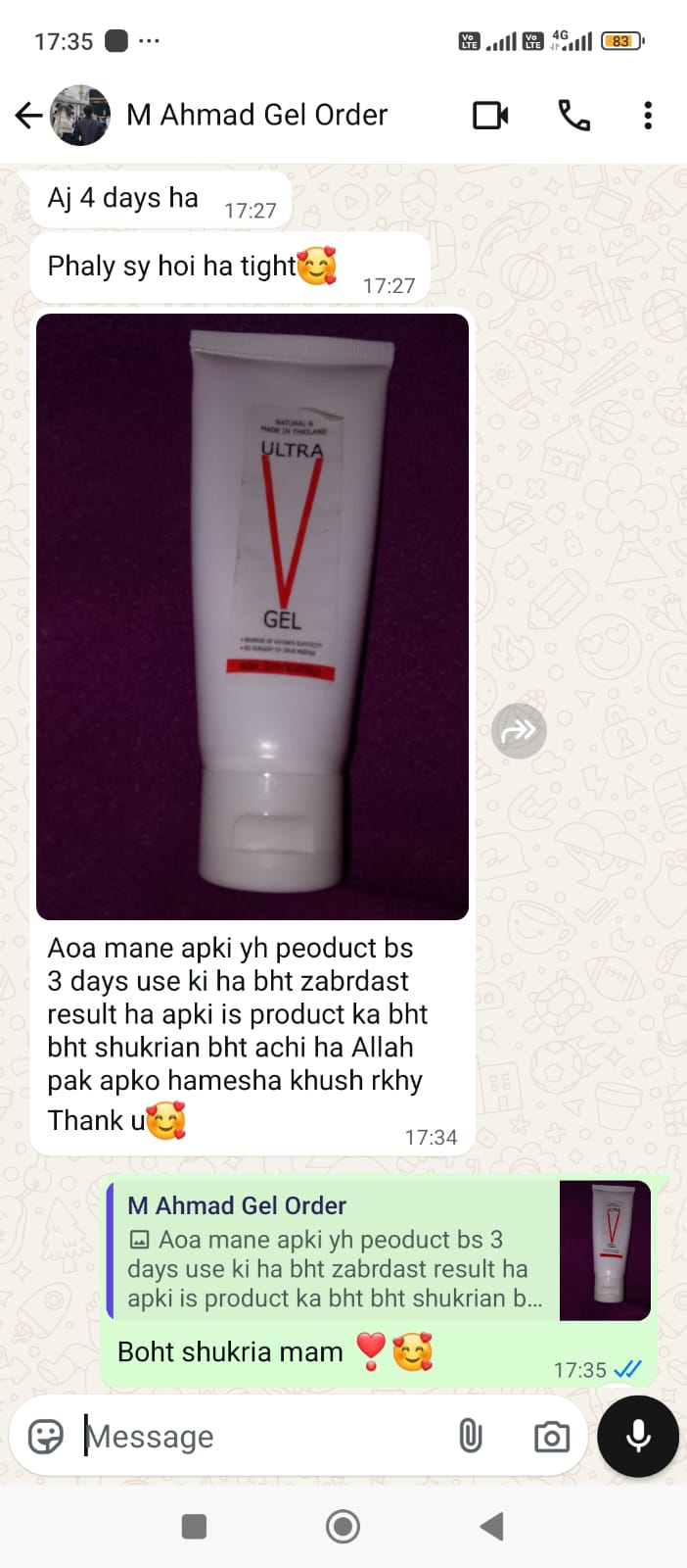 الٹرا وی جیل کے استعمال سے ویجائنا تنگ اور اندر سے صاف ہو جاتی ہے اور لیکوریا کا مسئلہ بھی ٹھیک ہو جاتا ہے۔