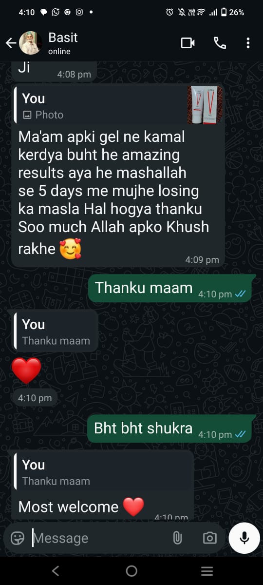 ان خواتین کےلیےہم لائےہیں ایک حیرت انگیزپروڈکٹ یہ جیل جو(ویجائنہ) شرمگاہ کےپٹھوں کواتناٹائٹ کرتاہے۔وہ بھی ایک ہفتے میں جس سےخواتین کی شرمگاہ کنوارےپن جیسی ہوجاتی ہےاورشادی شدہ حضرات کو ہمبستری کےدوران کنواری لڑکی جیسی فیلنگزحاصل ہوگی اورآپکی ازدواجی زندگی میں ناقابل یقین تبدیلی لائےگا۔